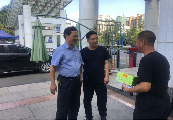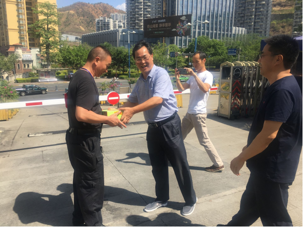 6月5日下午,学校工会常务副主席梁士海、综合科科长张宇峰,保卫处处长林伟、处长助理祝慧一行,深入开展“关爱职工、夏送清凉”活动,慰问奋战在室外工作一线的保卫处职工,为他们送去了清凉降暑的凉茶饮料,对他们战高温、抗酷暑,勇于奉献、坚守岗位的精神给予赞扬,对他们为了学校稳定和谐所付出的辛勤劳动表示感谢,并嘱咐他们做好夏季防暑降温工作。