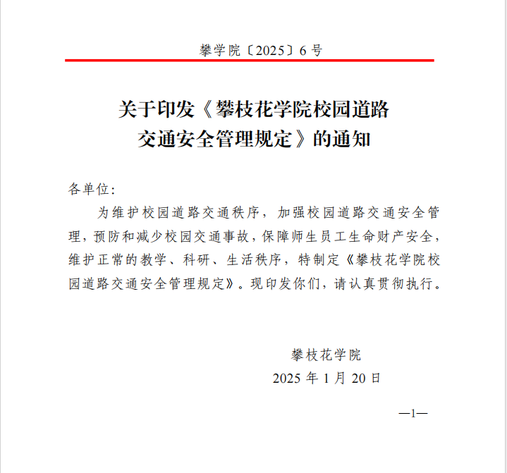 攀学院2025-6号文-关于印发《攀枝花学院校园道路交通安全管理规定》的通知.pdf